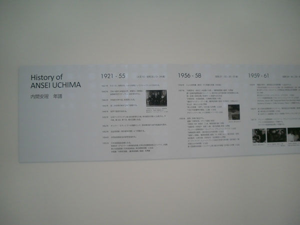 展示室を出ると、細長い廊下があり、内間先生の略歴が掲示されていました。
