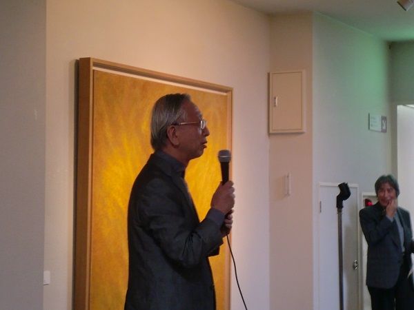 パーティで挨拶する二代目館長・寺田勝彦さん。