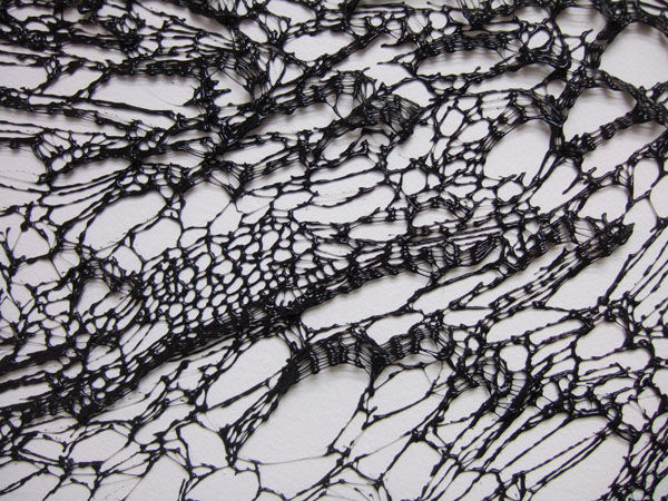名和晃平さんの壁に直接黒いグルーで描いています。