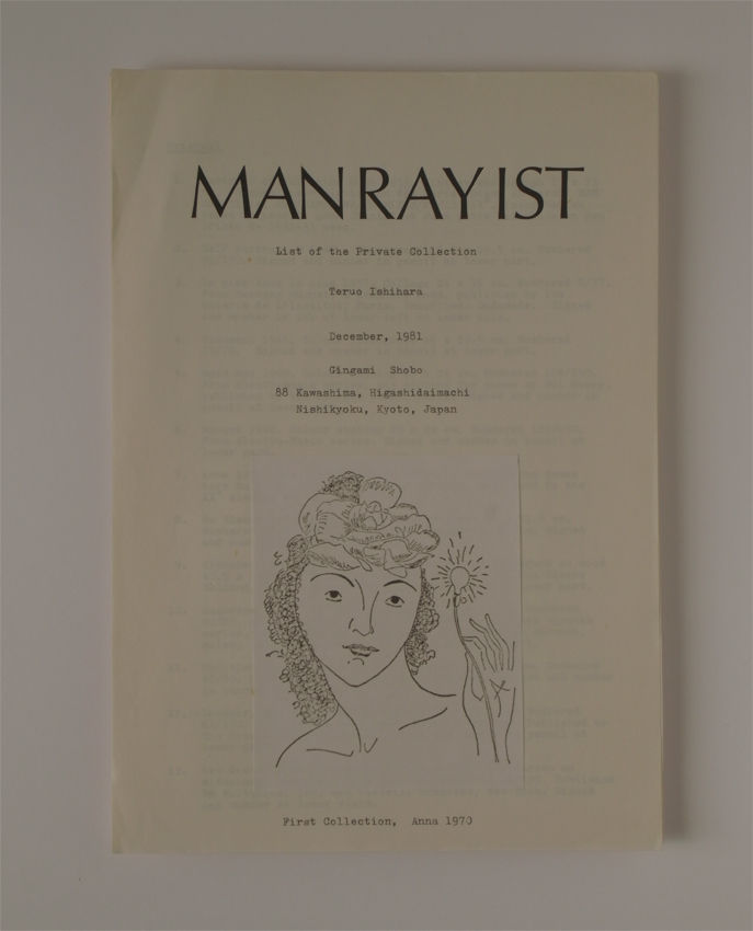 コレクションが増えてくると、マン・レイの意図や制作の時代背景、作品個々の関係性について考えるようになった。直感に頼り、視覚的興味だけで求めるのではなく、理想の展覧会を想定して、ジクソーパズルのピースを埋めるような購入態度を自らに課した(資金の問題かもしれないけど)。そして、収集の楽しみを多くの人に知ってもらいたくなってリストを作った。集めた物を客観的に見たいと云うわたしの側の理由もあったと思う。オリベッティのタイプライターを使ってオリジナル15点と書籍28点、A4サイズで4枚、表紙を「アンナ」のデッサンで飾りタイトルをマン・レイ主義者の意図から「MAN RAY IST」とし、インレタで記した。これをギャラリー16の井上道子さんにお見せし画廊に置いてもらったところ、ある女性がなにげなく「マン・レイになってしまった人ですね」と声を掛けてくれたので、我が意を得たりと嬉しくなった。