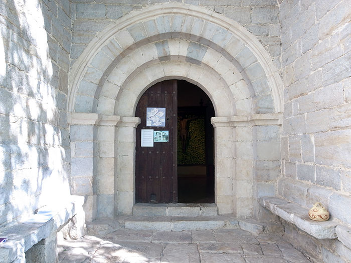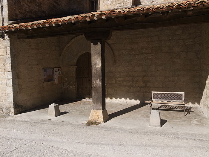 町の小さな教会には鍵がかかっている。やはり治安の問題なのだろうか。フランスではこのようなことは無かったので非常に残念である。探せば誰かカギを持っている人がいるはずなのだが、すぐには見つかりそうもない。あきらめて先を急ぐことにする。入り口に庇がかかり、椅子が置いてある。巡礼者に対するせめてもの気遣いなのだろうか。