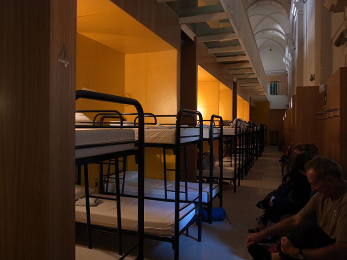 パンプローナ アルベルゲ2階にも二段ベッドが並んでいる