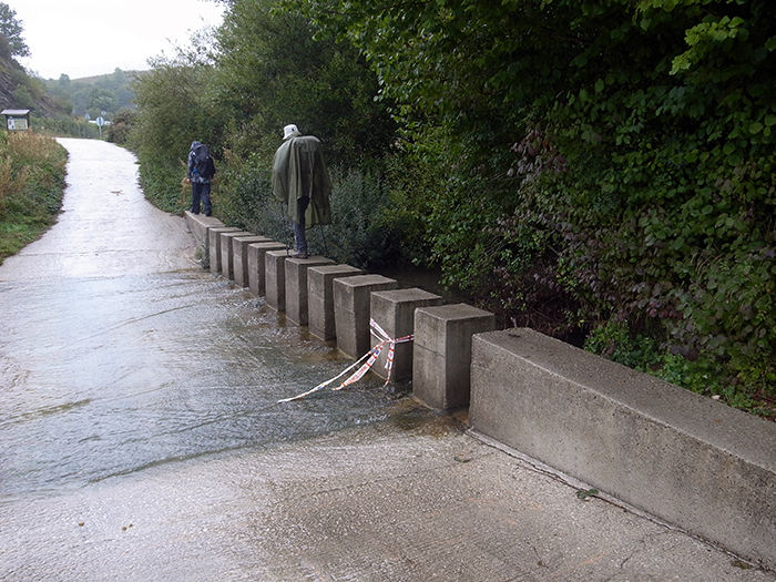 雨と風が強い。ケビンの高性能のジャケットとは違い私の防水透湿性がいまいちなレインジャケットでは内側がひどく蒸れる。ぐっしょりと濡れたTシャツが体に張り付き体力が奪われるだけでなく実に不快である。それでも一歩ずつ巡礼路を進んでいく。