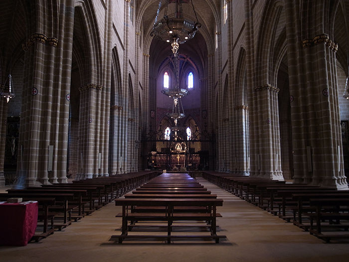 坂を登り、旧市街に入る。旧市街は細い道をはさんで古い建物がひしめき合い、王都時代の雰囲気がただよっている。一番古い地区にあるサンタ・マリア大聖堂は11世紀にロマネスク様式で建てられ、その後2度の大きな改築を経て今の形になったものである。