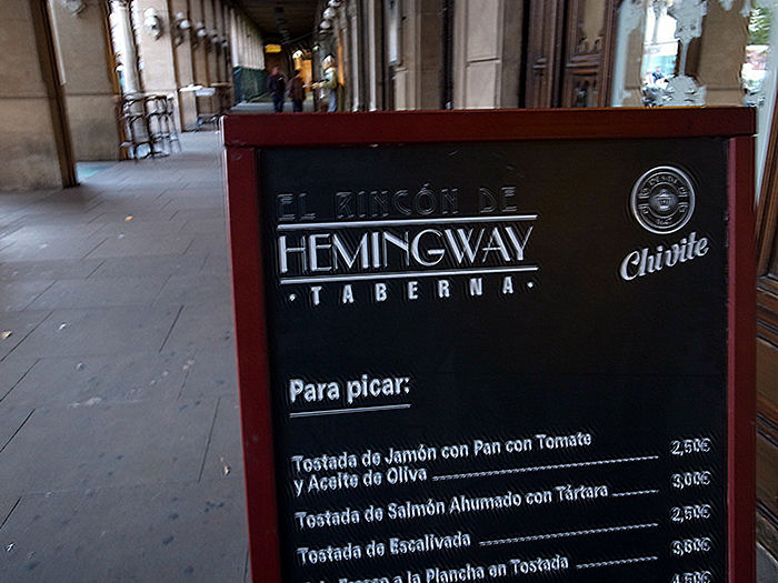カフェ・イルーニャ 立て看板ヘミングウェイの名前がある