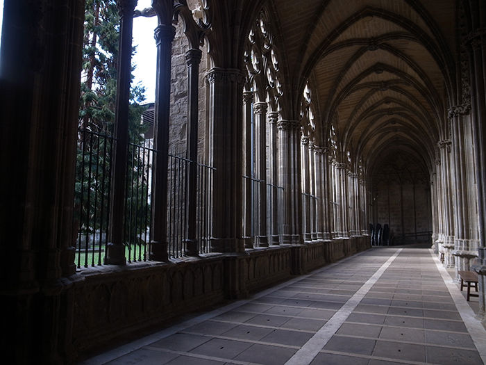 カテドラル 回廊お昼もランチを食べにカフェ・イルーニャに向かう。食事を終え、コーヒーを飲みイルーニャを出る。宿に戻りシエスタ。なんとも幸せな時間である。夕方、だいぶ気温が下がってきたのを見計らいパンプローナを散歩する。