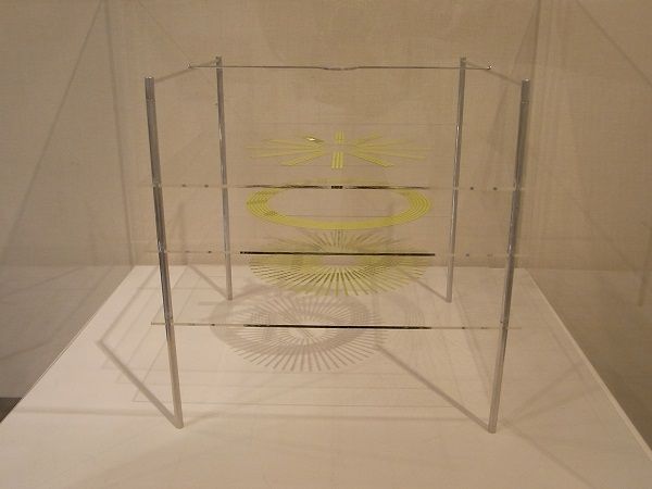 1977年に、瀧口は大ガラス下部(独身者の領域)の右端にある、「眼科医の商人」と呼ばれる3つの楕円と「マンダラ」という部分を立体化したオブジェを制作し、《檢眼圖》と名づける。既にデュシャンは亡くなっており、当初瀧口は、未亡人のティニー・デュシャンに贈るために、小部数限定で制作するつもりだったようだ。制作を実行するにあたって、オブジェ作家として広く知られた岡崎和郎が選ばれている。本作の面白さは、《大ガラス》において楕円に描かれた円を、再び二次元の平面に戻して、三次元のオブジェにした点にある。デュシャンがメモ集《不定法で》のなかで四次元について論じていることからも分かるように、《大ガラス》は次元の問題と深い関わりがある。瀧口はこの作品を通して、次元に関するデュシャンの言葉を再解釈したと見ることもできよう。