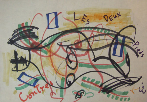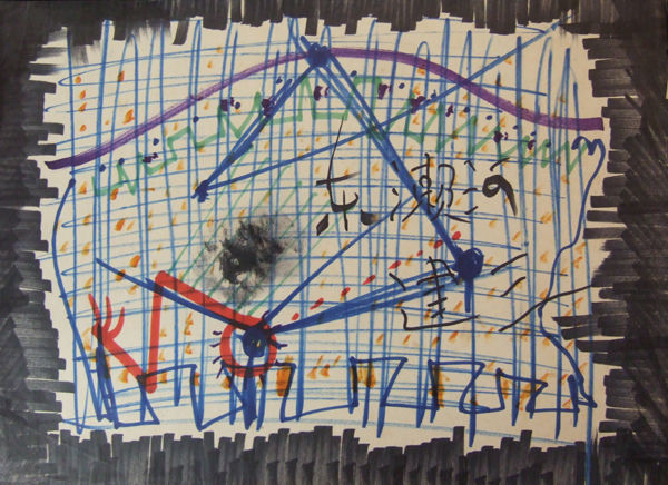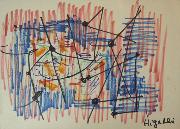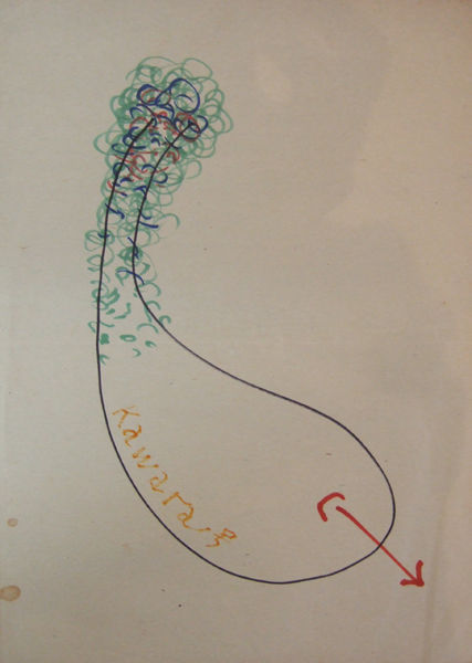 今まで一度も額装されたことはなく、5点ともに同じサイズの紙に同じ材料を使って描かれ、厚紙に一緒にはさんで保管されていました。1958年のある日、集まった5人がその場で描いたものでしょう。