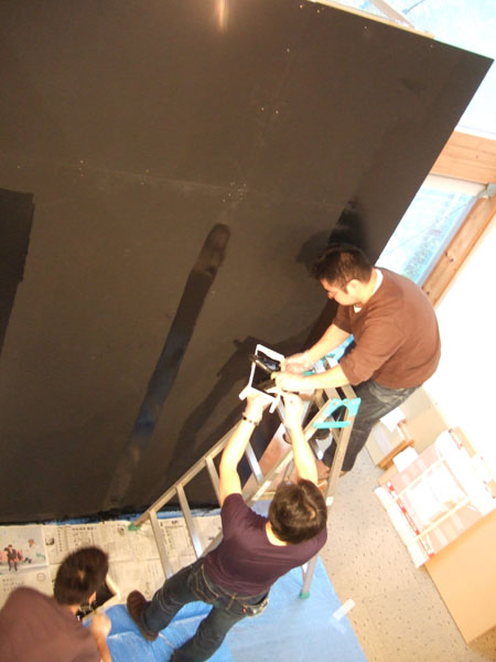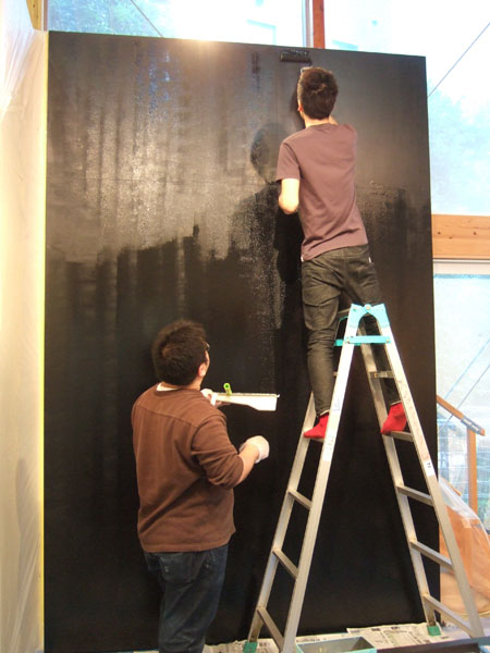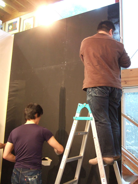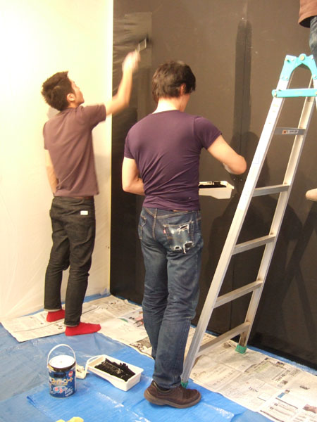 さらに16日から始まる「野口琢郎展」に備えて、強力助っ人浜田さんの指示で壁面を黒く塗り替える作業が入り、てんやわんやでした。