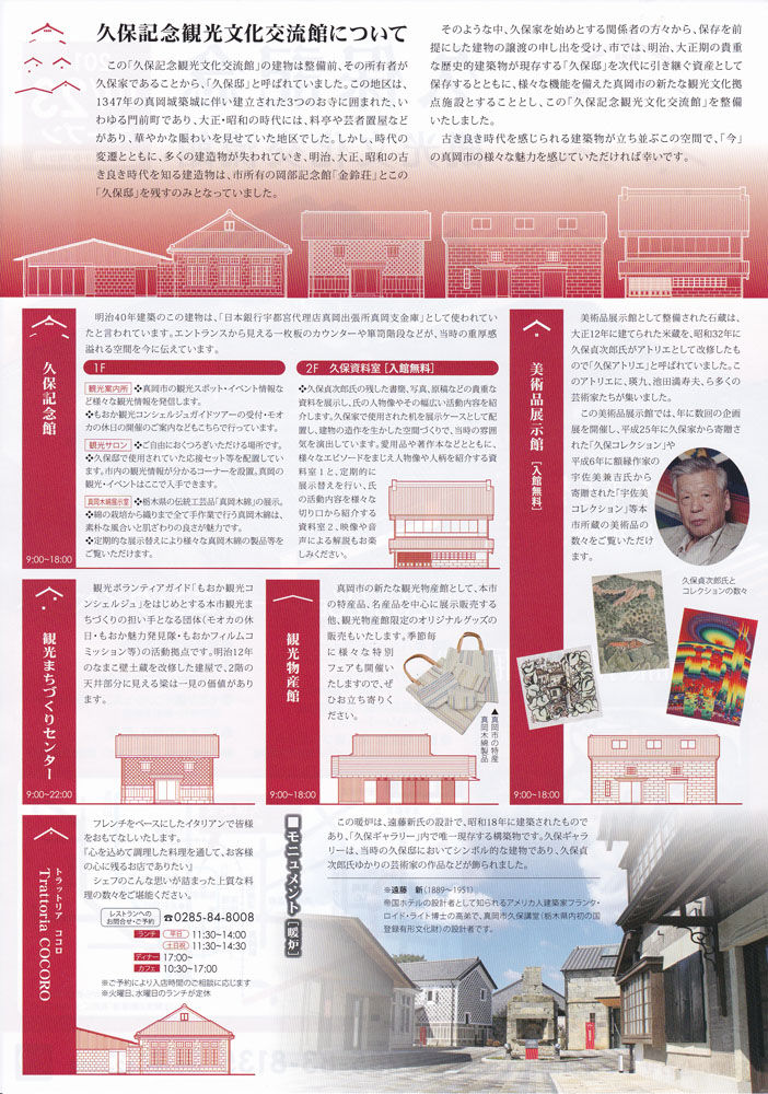観光案内所や美術品展示館、レストラン、観光物産館などが設けられ真岡の新しい観光文化の拠点施設として期待されています。