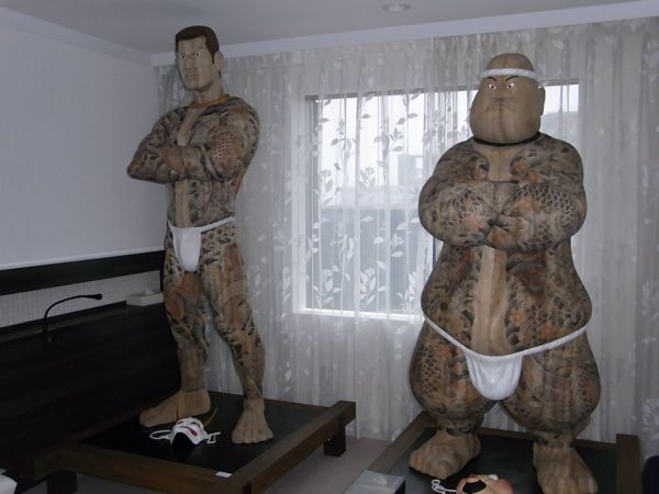 ホテルの部屋を圧する葉栗さんの二体の彫刻、スタッフSのレポートにあるように注目度は抜群でした。