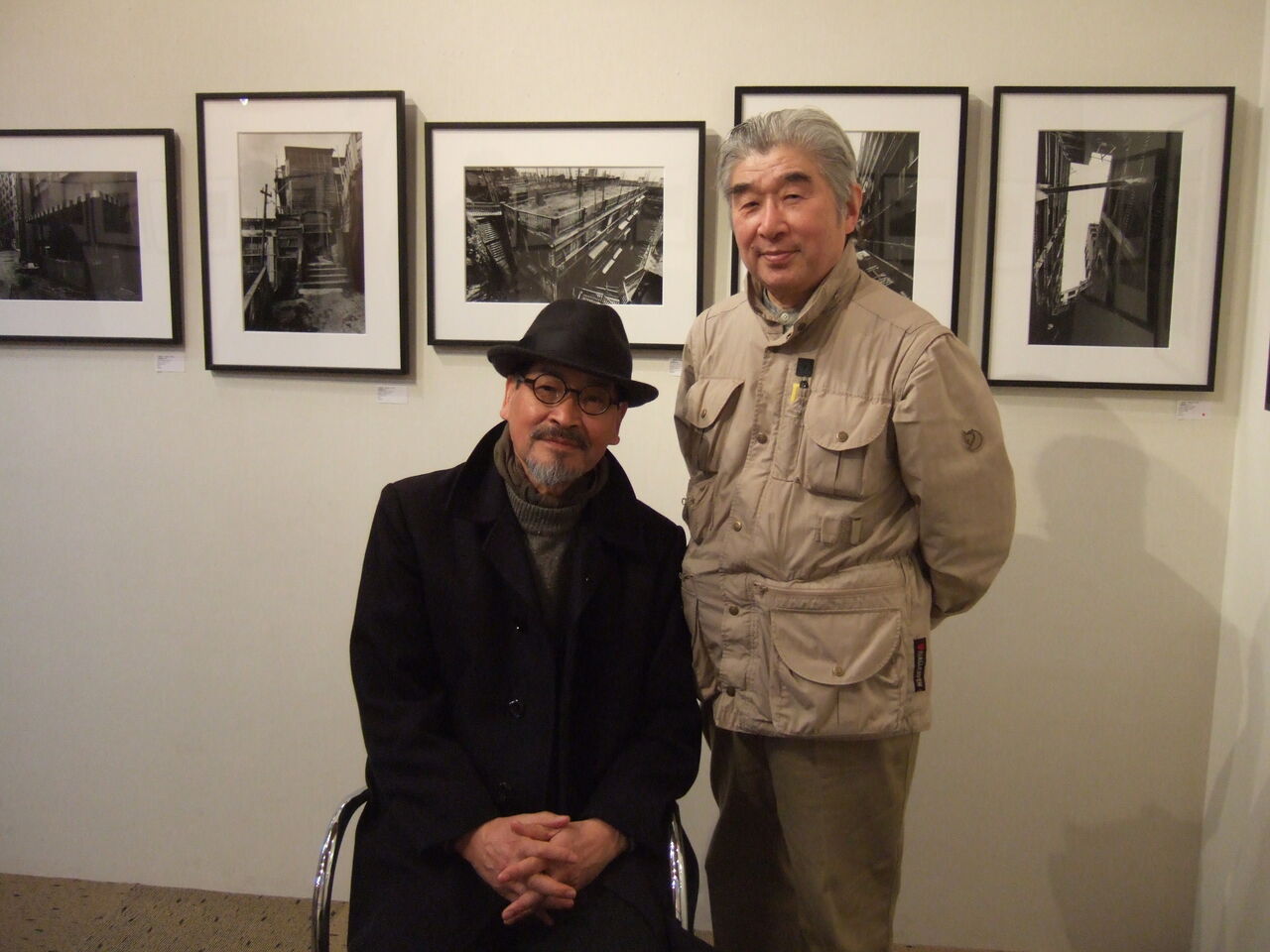 2015.1.23 画廊亭主の徒然なる日々 写真・映像 鬼海弘雄先生来廊 鬼海弘雄先生が「植田実写真展―都市のインク 端島複合体 同潤会アパートメント」に来廊されました。 左)鬼海弘雄先生、右)植田実先生 2015年1月23日 ときの忘れもの(南青山)