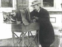 ウィリーのカメラはガラス乾板を使うものであり、苦労の末に雪の結晶の撮影に成功した場面(図5)では、ウィリーがガラス乾板を手に喜んで駆け出す様子が描かれています。ウィリーは撮影したガラス乾板を使って、幻灯会を開き、幻灯機(プロジェクターの原型)を使って近所の人たちに一つ一つ形の異なる雪の結晶の写真を見せたりもしていました(図6)。