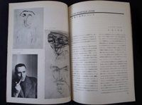瀧口訳、タピエ「別の美学について」(「みづゑ」1956年12月号。左頁左上はミショーの、右はトビーのタピエ肖像。左下はタピエ近影、撮影者不詳)