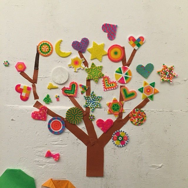 『木をかこう』には、絵を描くだけではなく紙や針金をつかって木を作る方法を示している箇所もあり、この方法を真似して、娘と一緒に折り紙を壁に貼りつけて木を作ってみたりもしました(図6)。