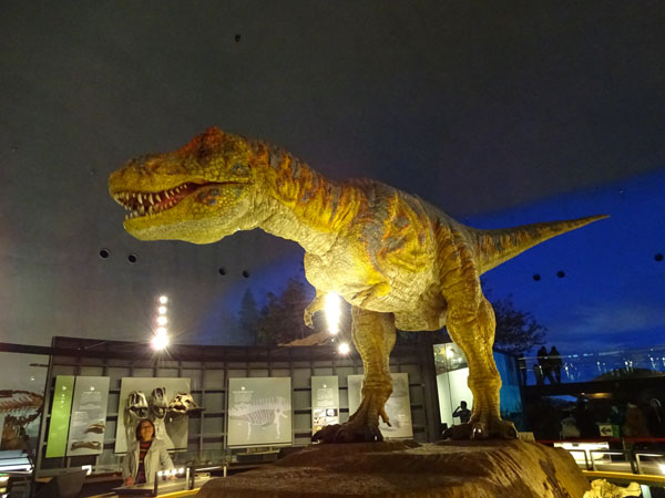 動きながら大きな泣き声を上げる恐竜の模型に驚いていると…あれ、植田先生がいない。博物館の中では皆さん自由行動ですが、僕には植田先生のボディガードという使命があるため、恐竜とノンキに遊んではいられません。B1階から3階まである博物館の中を歩き回り、ようやくフクイラプトルの近くにいる植田先生を発見。先生は恐竜よりも黒川作品をじっくり見ては写真を撮っていました。バスの中で「意外と面白い建築だったねぇ」と先生の一言。建築に関して知識がない僕には"意外と"に含まれている真意が分かったようで分からない…勉強が必要です。