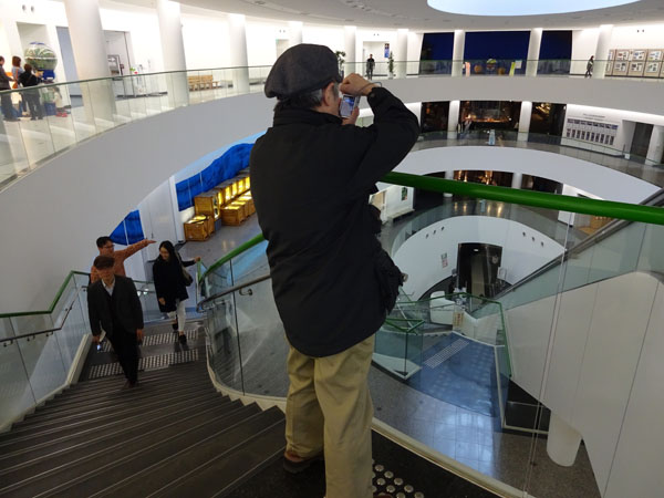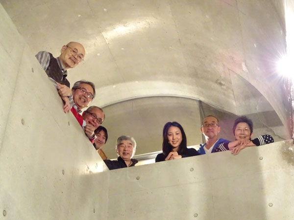 福井県立美術館の展示場へとつづく階段で、ツアー参加者の皆様と集合写真を一枚。