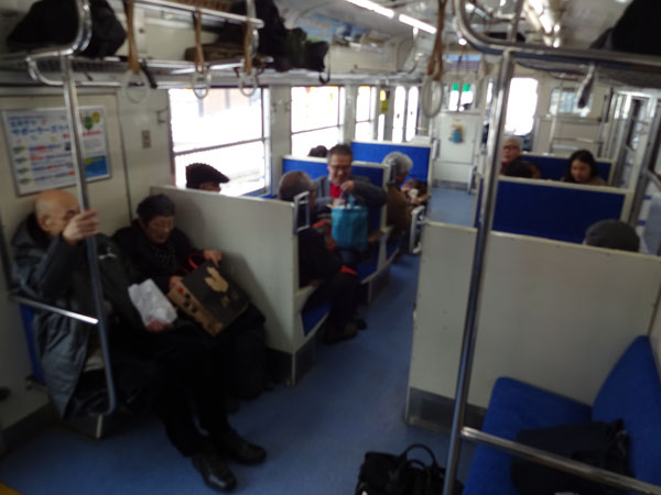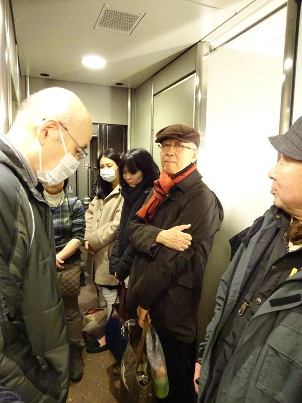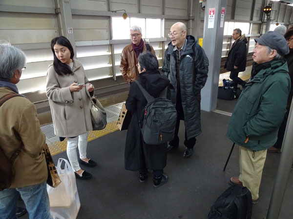 2月の東京は日中は暖かいですが、夜になるとまだ少し寒いですね。一ヶ月前のツアー当日も福井の勝山は極寒だろうと覚悟して、東京駅に向かいました。新幹線のホームに集合時間の1時間も前に到着していた植田実先生と合流し、8時33分発の新幹線ひかりに乗車。約2時間余で米原駅に到着、しらさぎに乗り換えようとした直前にさっそくトラブル発生です。