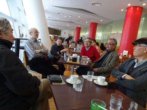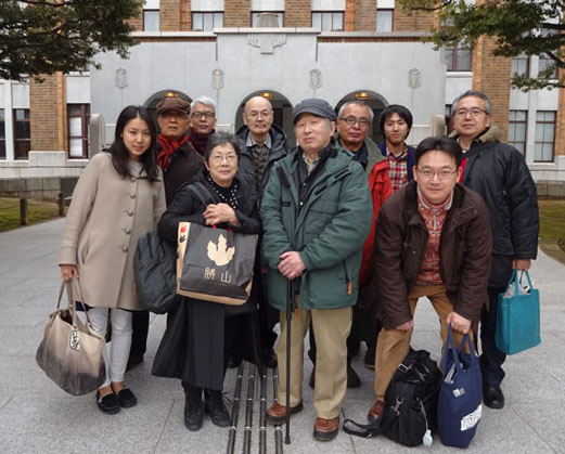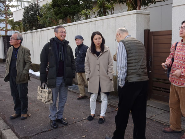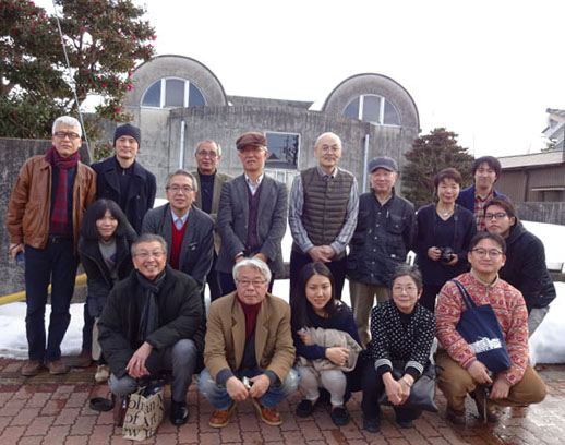 左から、浜田宏司さん、六本木久志さん、石原輝雄さん、西山郁夫さん、芳賀言太郎さん(奥)、綿貫不二夫、綿貫令子、植田実先生、中村孝幸さん、神林菜穂子さん(奥)、料治幸子さん(手前)、酒井実通男さん、塩澤和夫さん、尾立麗子(奥)