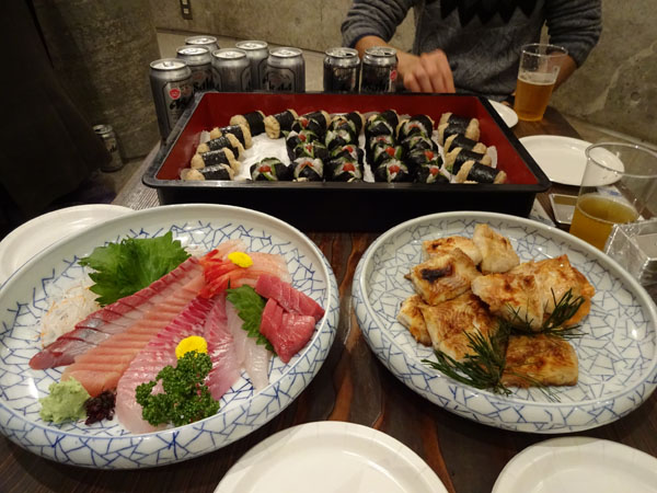 美味しいお料理もご馳走になってお腹もいっぱいになったころ、そろそろ今夜の宿「勝山ニューホテル」に戻る時間になりました。ホテルに着くと、お風呂で汗を流してゆっくり旅の疲れを癒します。その後は各部屋に戻ってもなお、ツアーに参加の皆さんはまだまだお酒を片手に美術作品や美術市場の話に花を咲かせていました。