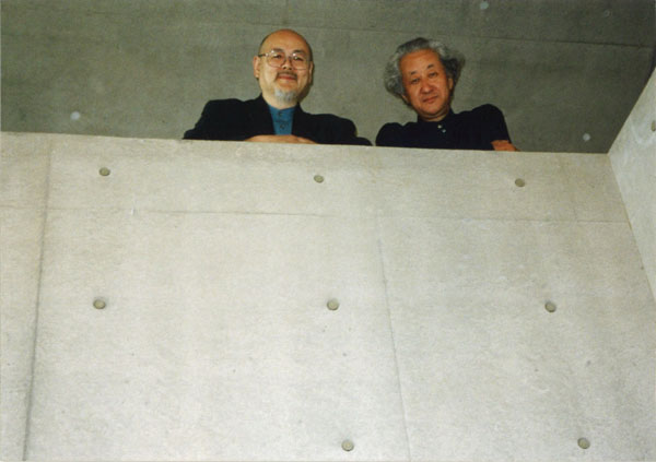 15年前の同じアングルから、綿貫不二夫と磯崎新先生1999年