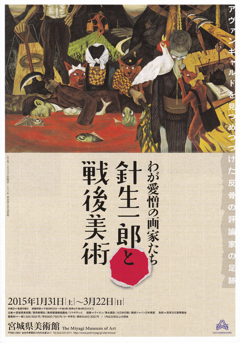「主に1950~70年代に針生が関わった芸術運動や展覧会に焦点をあて、著書『わが愛憎の画家たち』などで論評した作家と作品を紹介し、ひとりの評論家の視線を通して戦後美術史を再読」とのことですが、実態は針生一郎という縦糸(アヴァンギャルドを見つめつづけた反骨の評論家の足跡)を使って、一世代か二世代下の宮城県美術館学芸員の戦後美術史を読み直す愚直な視線を横糸として組まれた大胆かつ意欲的な展覧会です。