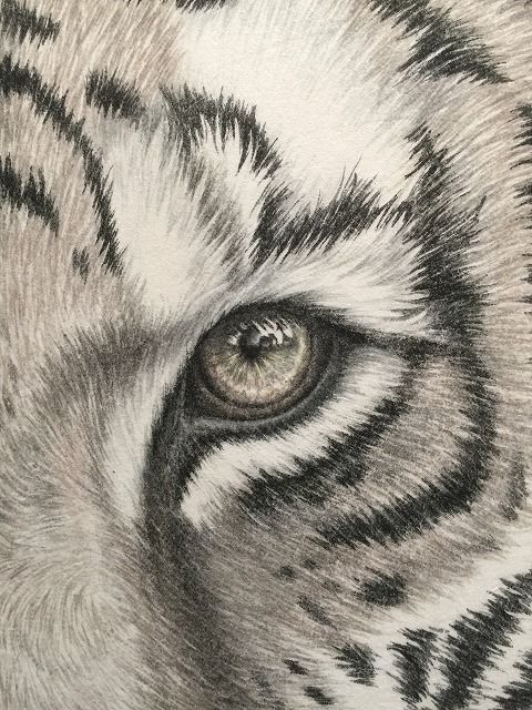 細緻に描かれた瞳には、それぞれの動物が見つめる先にある風景までも描写しています。