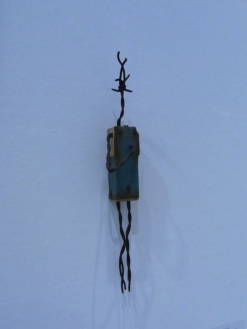 一見すると有刺鉄線、金属板と木材で作った人型作品に見えますが、実はこれ、全て木彫です。
