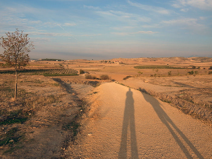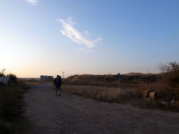 朝焼けに向かって歩みを進める。日差しが心地よい。森を抜け、小さな川を渡り、ラ・リオハ県に入る。目的地のログローリョまでは10㎞ほど。この調子だとお昼前についてしまう。