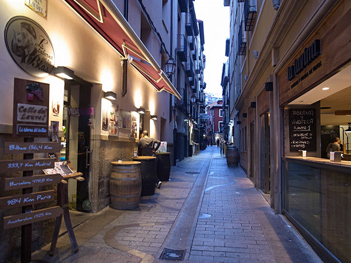 夜、ポーと一緒にバルをはしごする。ログローリョはワインと並んで、美食の町としても知られている。ここでは、一つの店で長居するような飲み方はしない。バルにはそれぞれの店自慢のタパス(スペイン風おつまみ)があるため、それらをつまみながらバルをはしごして歩くのが通の飲み方である。このバルのはしごのことを「txikiteo:テキテオ」と呼ぶ。これはバスク地方の呼び名で、足のない小ぶりのワイングラスのこと。グラス片手に食べられるように爪楊枝にいろんなものを刺したピンチョスをつまむ。タパスのバルがある地区としてはセンダ・デ・ロス・エレファンテス(象の小道)と呼ばれるラウレル通りと、サン・ファン通りが有名だが、多くのバルが集中していて、一つの通りがそのまま大きな一つのバルといった感じである。美味しいタパスとリオハのワインで英気を養う。至福の時間である。これこそ巡礼の醍醐味なのかもしれない。