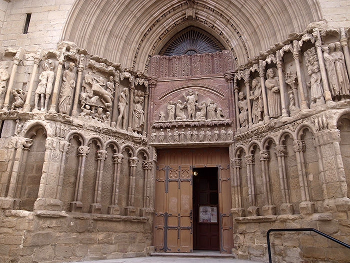 入り口彫刻夜、ポーと一緒にバルをはしごする。ログローリョはワインと並んで、美食の町としても知られている。ここでは、一つの店で長居するような飲み方はしない。バルにはそれぞれの店自慢のタパス(スペイン風おつまみ)があるため、それらをつまみながらバルをはしごして歩くのが通の飲み方である。このバルのはしごのことを「txikiteo:テキテオ」と呼ぶ。これはバスク地方の呼び名で、足のない小ぶりのワイングラスのこと。グラス片手に食べられるように爪楊枝にいろんなものを刺したピンチョスをつまむ。タパスのバルがある地区としてはセンダ・デ・ロス・エレファンテス(象の小道)と呼ばれるラウレル通りと、サン・ファン通りが有名だが、多くのバルが集中していて、一つの通りがそのまま大きな一つのバルといった感じである。美味しいタパスとリオハのワインで英気を養う。至福の時間である。これこそ巡礼の醍醐味なのかもしれない。