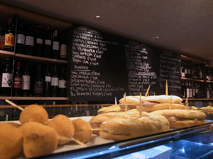 タパス(スペイン風おつまみ)が並ぶ。