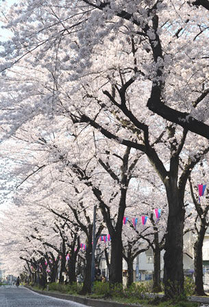 別所沼から武蔵浦和駅まで続く遊歩道には桜並木が続いている。