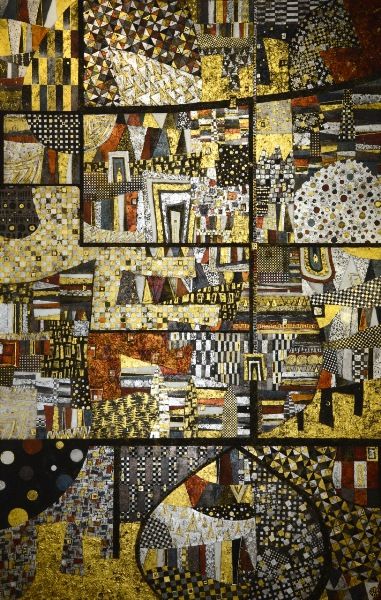 箔画(木パネル、漆、金・銀・プラチナ箔、石炭、樹脂、透明アクリル絵具)