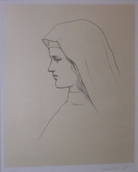 私たちが版画の制作依頼に舟越先生のお宅に伺ったのは1980年頃で、リトグラフや銅版を10点ほどエディションさせていただきました。石や金属に直接描画するのは慣れないとなかなかうまくいかないものですが、舟越先生はそもそも大理石を彫るのが本職でしたから「ボクは石や金属に描くのは苦にならない」とおっしゃって重い石版や硬い銅版に素晴らしい線描で女性像を描いてくださいました。