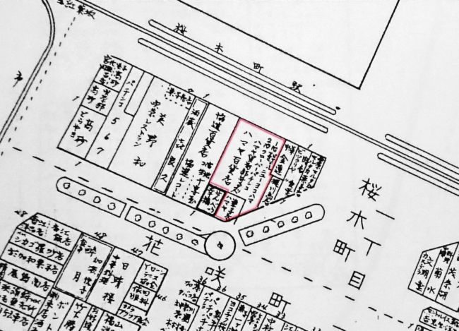 なお、昭和31年版『横浜中区明細地図』には、画像のように「ハマヤ百貨店」が桜木町駅前に存在していた。住所は当時の桜木町1-1、一等地である。