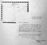 ニューヨークに戻ったティニー夫人に贈られた(デュシャンの分の)2部は、ちょうどクリスマス直前に、コルディエ・エクストローム画廊経由で届けられたようである。12月28日付けの夫人からの礼状が残されている(図13-12)。この礼状には瀧口が「美術手帖」に発表した追悼文「急速な鎮魂曲」の抜き刷りへの言及もあるが、この点は次回に述べる。(続く)