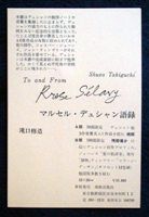 「マルセル・デュシャンノ訃報ニ接シ悲シミ二タエズ/ケッシテジニンシナカッタ偉大ナ芸術家詩人ハ巨大ナガラス(même)ニ入ラレマシタ/彼ニ捧ゲル本ノ完成直前ニ/医ヤシガタキ悔恨/2週間後ノアナタノアドレスオ知ラセ乞ウ」(前出「ローズ・セラヴィ’58~’68」の瀧口自訳)