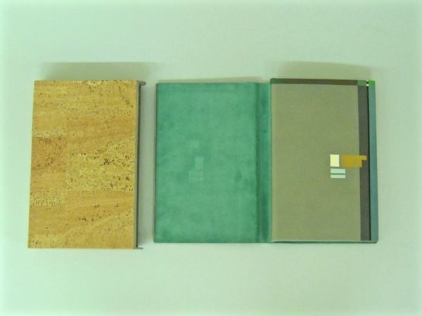 両面開きになる箱。総革装の、特に立体的なデコールがある本で、スリップケースに出し入れ出来ない場合に用いる。