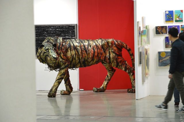 あと、こんな素材で…というような変わった作品や、だまし絵のようなもの、KIAFに来るといつも思う事ですが、作家をしていても何がアートで何がアートで無いのかもよく解らなくなる程で、アートは何でもありなんだなと、、