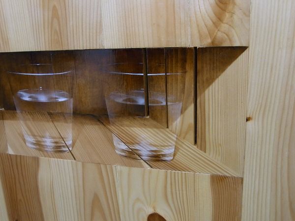 平面的な寄木細工の作品なのですが、素材のテクスチャを利用することで奥行きがあるように錯覚させる作品。