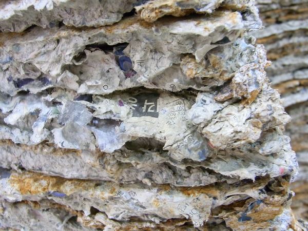 傍目にはコンクリートを削りだして作ったオブジェのように見えますが、近寄って見ると材質はなんと紙。