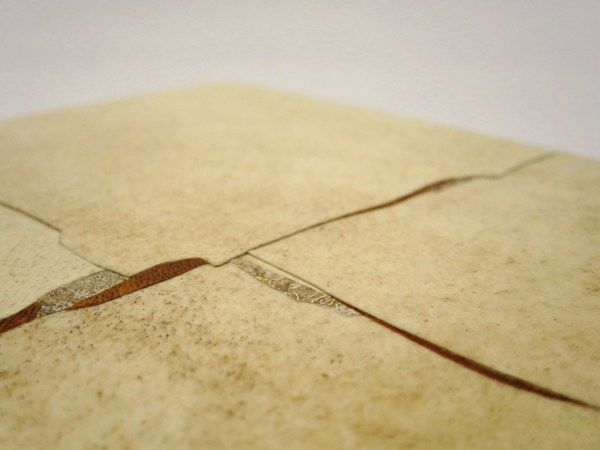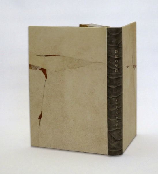 全ての折丁のランゲットを接着したあと、表装材でおおい、装飾を施す。和装本から着想を得た製本形態(下図参照)。