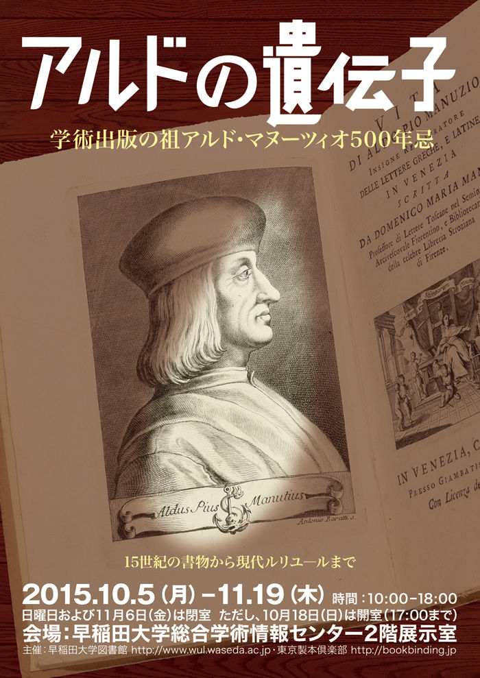 2015年はアルド・マヌーツィオ500年忌に当たり、ヴェネツィアを初めとして、ニューヨーク、マンチェスターなど各地で展覧会が開催されていますが、日本でも早稲田大学図書館で展覧会が行われています。
