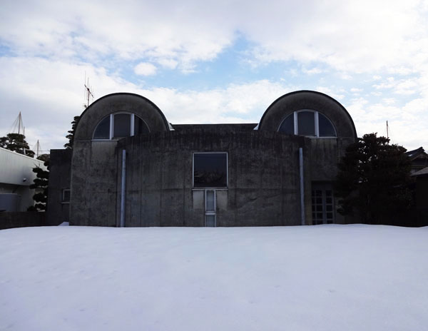 「雪国。そこにはまったく異なる建築的対応が必要とみえるのだが、コンクリートの構造体であるかぎりでは、結露以外に変った条件はない。そこで、 手なれたヴォールト屋根をここでも使用する。設計者への注文は、美術愛好家たちのためのサロンをつくることである。壁、天井ともにコンクリート打放しのま ま。それに、多くの版画コレクションがかけられる。そして、いまではこの近傍の文化的な中心となりつつある。 磯崎新」 1983・11 磯崎新 『SD』特集:磯崎新1976-1984(1984年1月、鹿島出版会)より転載