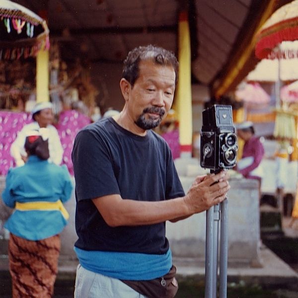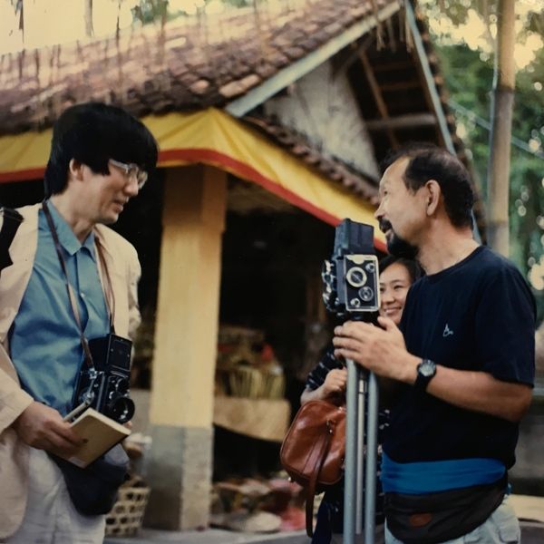 父が撮影した東松先生この頃の東松先生はアジアの国々を周って撮影をされていた時期だったようで、同じ時間に、バリ島の同じ寺院にいて、私はカメラ小僧で、先生と父のカメラが同じローライフレックスだった、そんなたくさんの偶然が重なったお陰で、東松先生に出会う事ができたのでした。