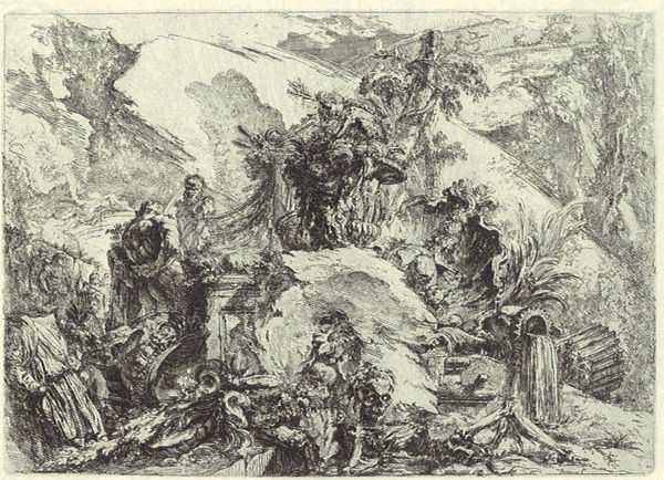 本来同居不能な建築要素――たとえばエジプトの壺とギリシアの柱頭、それにローマのトルソや東洋の樹木――が廃墟と化しながら自然に還元されつつあるもの、あるいは構造的に不可能な情景を遠近法の修辞で合理化してしまうもの(エッシャーよりもはるかに控え目に!)、そして現実の都市風景を写生したはずの市街図(ヴェドウータ)にいたっては、ありうべからざる視点から風景の微小な改作もなされているのである。カナレットのコラージュのように、これらは知識人たちのグランドツアーの際には、観光図として売られたのだった。