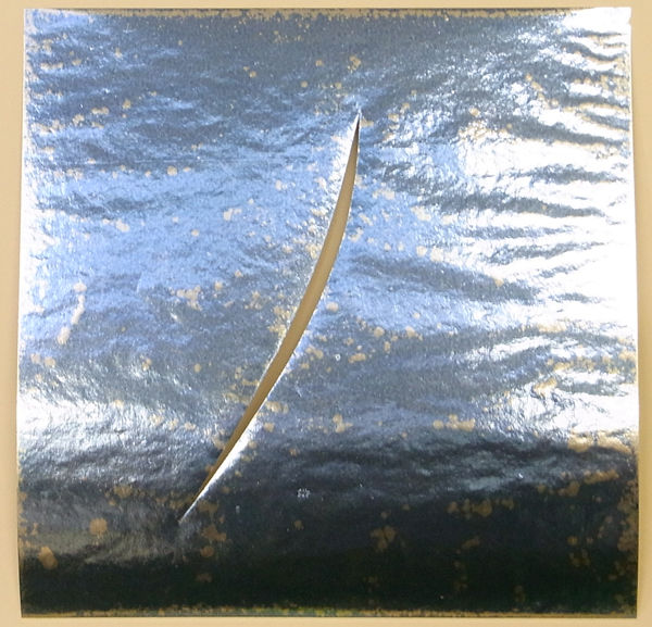 *1962年に東京画廊で開催された「ルチオ・フォンタナ展」のカタログは凝りにこったもので、その中に数点の切り抜きが収められています。その中の一枚を額装したものですが、落札された方には完璧な保存状態のカタログをおつけします。