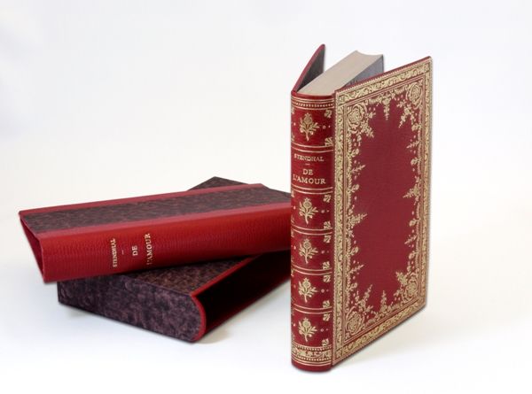 両面開きになる箱。総革装の、特に立体的なデコールがある本で、スリップケースに出し入れ出来ない場合に用いる。