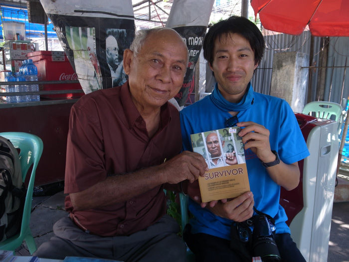 サバイバー、チュン・メイ氏と筆者キリング・フィールド。プノンペンの南西約12kmの場所にある。ここは前述のトール・スレイン刑務所から運ばれた人々を虐殺した場所である。